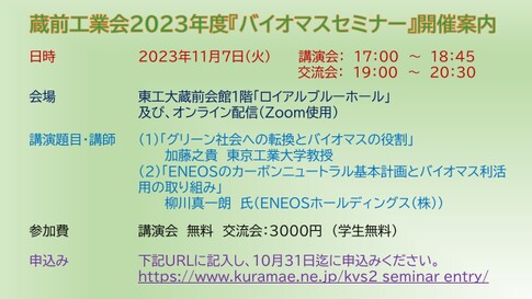 - 蔵前工業会2023年度『バイオマスセミナー』開催報告