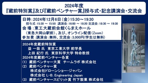 - 2024年度蔵前特別賞・ベンチャー賞授与式・記念講演会・交流会開催しました