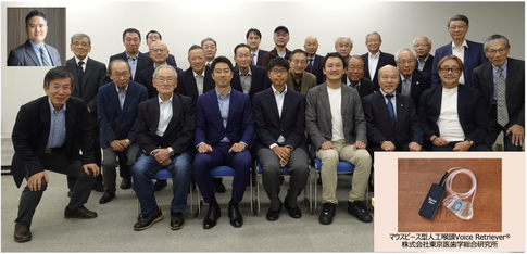 続いて、株式会社東京医歯学総合研究所 代表取締役 山田大志様(R6医科歯科博)に登壇いただき、マウスピース型人工喉頭「Voice Retriever®」について語っていただきました。同社は「歯科の技術をより多くの分野へ」を目的に2023年6月設立、旧東京医科歯科大学の研究成果を基に2025年4月からVoiceRetを製品化されています。口腔内に装着するだけで再び会話ができるようになる画期的な製品です。大阪・関西万博やマスメディアでも注目されている同社のビジネスと技術について、いろいろなお話を聞かせていただきました。KITCとしては初めての医科歯科系ベンチャーでしたが、その製品化については様々な情報技術が活用されていることがわかりました。