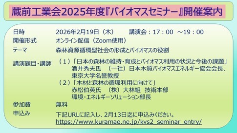 - 2025年度蔵前工業会『バイオマスセミナー』開催案内