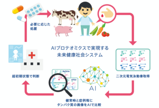 aiwell (株)は東工大林宣宏研究室の技術を活かし、ヒト・動物のプロテオミクス画像をもとにタンパク質の変異をAIで的確に判断し、バイオマーカー候補の早期探索や薬物の効果予測を可能にする事業を展開しています。将来的には、AIプロテオミクス技術を健康診断前の一次スクリーニングとして導入し、「人々の健康を見える化する新しい挑戦~タンパク質の可能性にかける~」の企業理念の実現を目指しています。